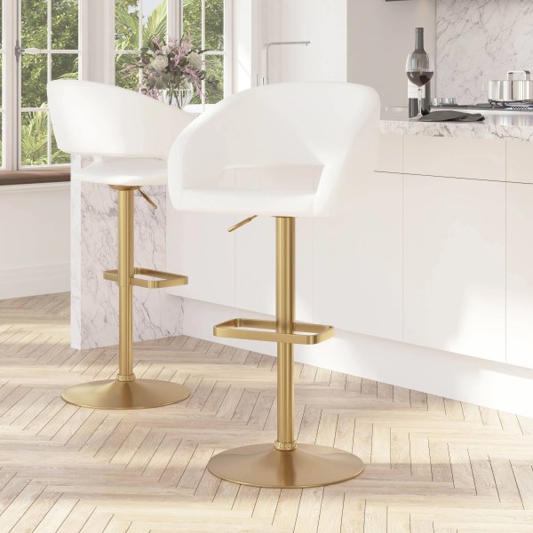 This sleek dual purpose stool easily adjusts from counter to bar height. The backless design is casual and contemporary which allow it to seamlessly accent any area in the home. The easy to clean vinyl upholstery is perfect when being used on a regular basis. The height adjustable swivel seat adjusts from counter to bar height with the handle located below the seat. The chrome footrest supports your feet while also providing a contemporary chic design. Size: 15 inch W x 15 inch D x 34 inch H.