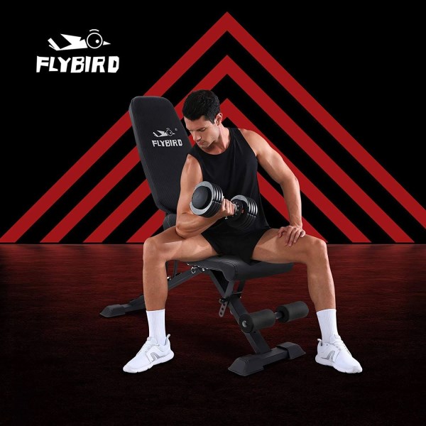 FLYBIRD Adjustable Bench,Utility Weight Bench for Full Body Workout- Multi-Purpose Foldable Incline/Decline Bench Gray