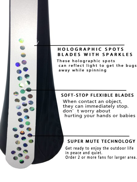 With the Table food Fan, you can enjoy the quiet time without interruption. Order 2 or more fans to cover larger square footage. Keep your food clean: Camping, BBQ, sunbath,family dinner and party there will no other things landing on you or your food. You can fully enjoy a conversation over an outdoor meal all the time. How does the Food Fan work:Working with batteries, it will go by the twirling motion of the fan. It could run in sunlight or shade, you can enjoy food happily. Gentle Soft-Stop Fan Blades:The blades are soft and stop instantly if they come in contact with obstacle, then resume as soon as the obstacle is removed. These soft-touch, high-quality fan blades are intentionally flexible. Enjoy peace of mind without worrying about little hands getting hurt. Portable Table Fan: This is a portable, battery powered table fan. Put 2 AA batteries on the bottom of the fan(batteries are not included). It travels easily for indoor or outdoor event.