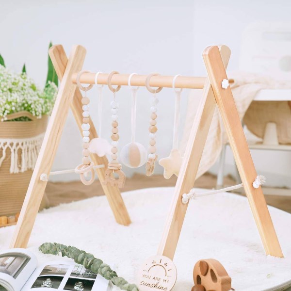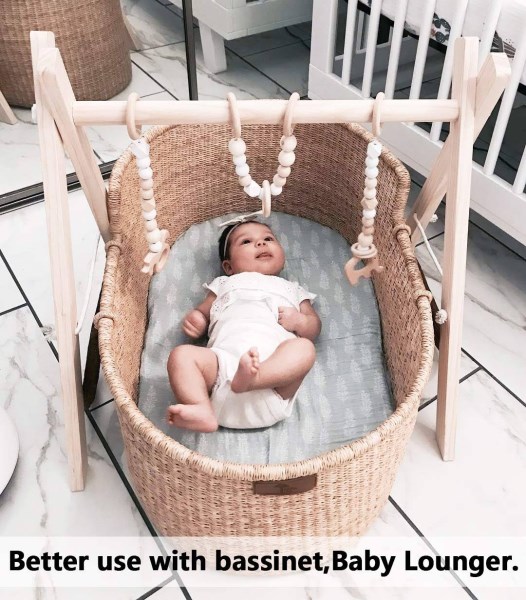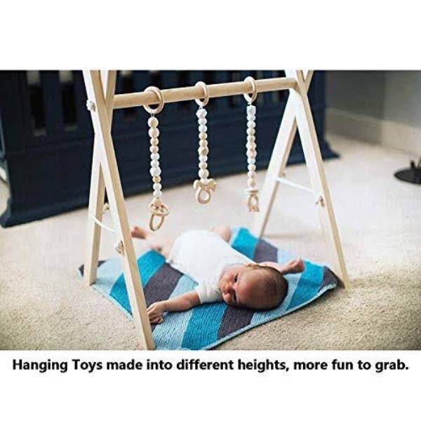 Activity gym is not a toy, and should only be used under parent/guardian supervision. Only use with lightweight toys hanging above baby. Do not assembly while the baby is underneath the baby gym. Check the toys every time before you give them to your baby. Baby Safe: The paint on the wood beans is environmentally friendly paint, totally safe.