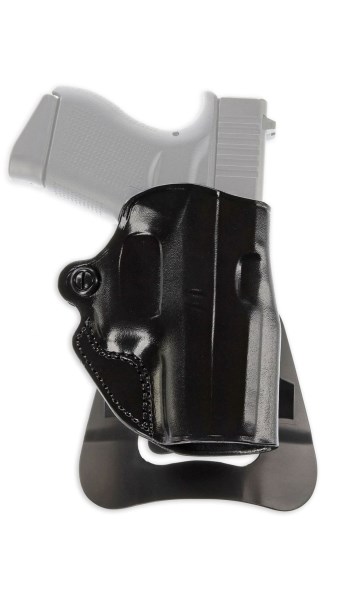 Featuring an open top design for speed, covered trigger for safety, and tension screw adjustment for added security, the highly versatile Speed Master 2.0 adds convenient on/off ability to the equation when set up as a paddle holster. As a huge bonus, the Speed Master 2.0 can also be configured as a solid and stable belt holster using the included belt slot attachment. The Speed Master 2.0s excellent versatility derives from its included twin attachment methods an adjustable belt slot and a paddle that are quickly and easily interchangeable by the end user. A flat-headed screwdriver is the only tool needed to swap one attachment for the other, giving the gun carrier the choice of two carry methods: the convenient paddle design or the stable and traditional belt slot. Constructed of premium steerhide, the Speed Master 2.0 fits belts up to 1 3/4. Available for semiauto pistols, the Speed Master 2.0 is available in right hand designs in tan or black finish.