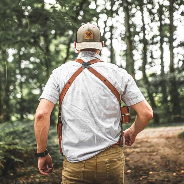 Galco Vertical Shoulder System – 4.0 Ambi Leather Glock 19 Tan