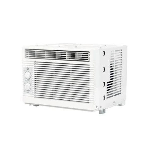 Keep your room cool and comfortable all year round with this GE mechanical room air conditioner. The 5000 BTU output provides optimal cooling in spaces measuring 100 to 150 square feet, making this window-type unit ideal for guest bedrooms, dorm rooms, utility rooms and small office units. With a 10-point mechanical thermostat, this GE room air conditioner lets you easily select from 10 temperature settings, ranging from low cool to high cool. Theres also a fan-only mode with two fan speed settings to maintain a pleasant atmosphere in your room. This 115V GE mechanical room air conditioner uses R-410A non-ozone-depleting refrigerant for environmental safety and has an 11.1 CEER for energy efficiency. The fixed chassis structure and included EZ Mount window installation kit ensure a precise fit in window openings 12.5 inches high and 23 inches to 38 inches wide.