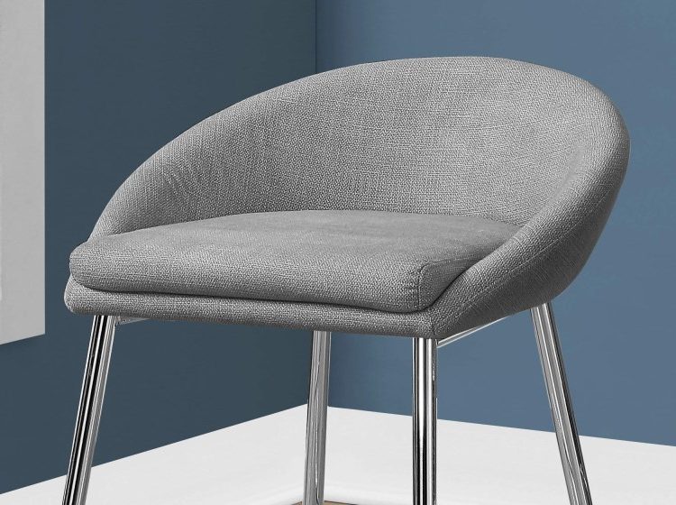 With simple lines and contemporary styling, this set of 2 counter height bar stools will transform your dining and entertainment area. The soft and smooth cushioned grey fabric seat with a low profile curved back gives a sleek modern look to a room. The sturdy chrome metal base with a convenient foot rest makes it easy and comfortable to hang around whether you are entertaining, jamming out a new tune with friends, or simply dining at the breakfast counter. This is the perfect seating for an open loft, condo, or small eat-in spaces.