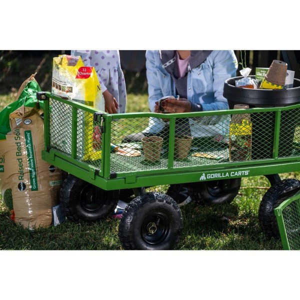 Equipped for projects big or small. The all-new 4 cu. ft. steel utility cart is optimized for responsive hauling. The new and improved rugged steel frame is rigid and durable, with a steel mesh deck that is 40 in. L x 21 in. W. If you need to haul larger loads, quickly turn this garden cart into a flatbed cart. Refreshed by design, the 2-in-1 convertible handle is easier to convert to a tow handle. Simply remove the handle pin and slide the handle grip out of the way. Exploring any project requires the perfect hauling solution. With a 800 lbs. hauling capacity and 10 in. pneumatic tires, nothing gets left behind.