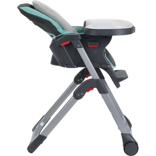 Dimensions: 29.25L x 24.5W x 43.5H in. Converts from infant highchair to booster seat. Features head and body support with a soft strap to keep baby safe. Removable seat pad is machine washable. Choose from available patterns. Three stages ensure the Graco Duo Diner LX Highchair will be with your baby from infancy until toddlerhood. Stage one reclines for early infant feedings, five height positions and adjustable footrests adjust while baby grows, and stage three converts to a booster seat for your toddler. The convertible three- and five-point harness keeps your baby secure through all stages.