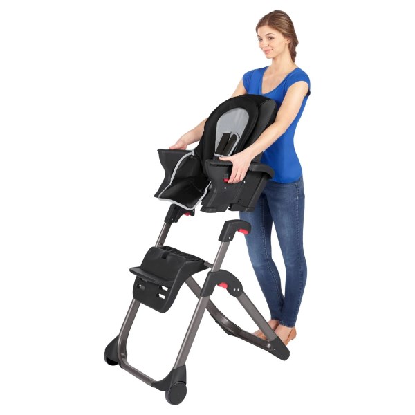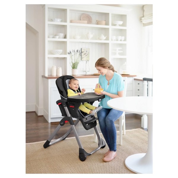 - Stage 1: Infant high chair reclines to provide a comfortable space for baby