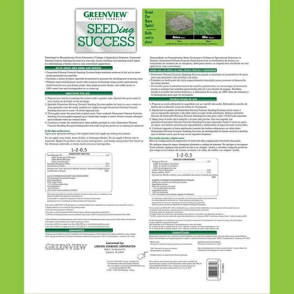 GreenView Fairway Formula Seeding Success is all you need to create a protective layer over grass seed. It is a grass seed protector made with a combination of paper mulch, starter fertilizer, and a tackifier used to help grass seed germinate. This protector for grass seed is ideal for repairing bare spots, seeding the new lawn section, and overseeding. Greenview grass seed protector keeps seed moist to promote growth and is a 100% weed-free straw alternative since it biodegrades for no clean-up. This law seed protector acts as a fertilizer for a strong lawn from the start. Use this Greenview grass seed that covers up to 760 square feet.