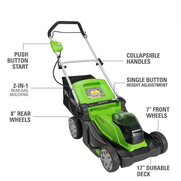 - GreenWorks 40-Volt 17-Inch Cordless Brushed Lawn Mower (Bare Tool)