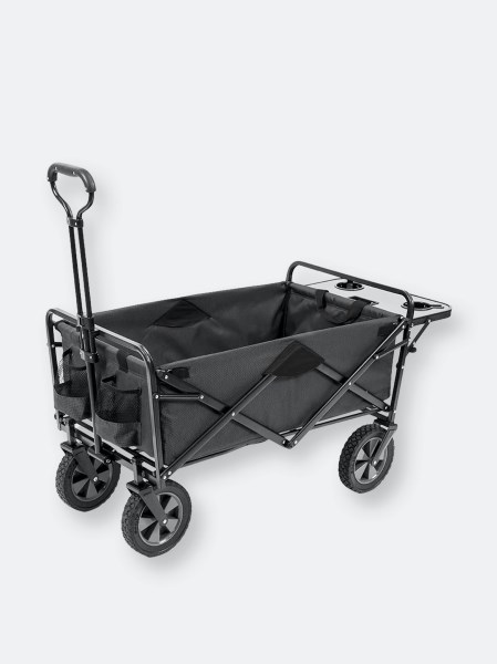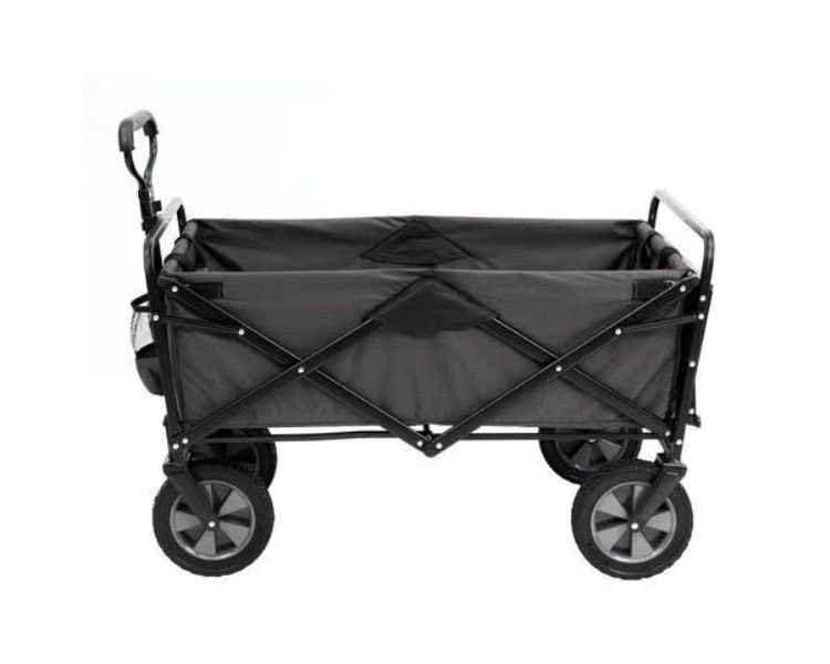 PREMIUM MATERIAL- This folding wagon cart is composed of a sturdy steel frame that is fully welded to make the frame firmly reinforced. The collapsible cart is equipped with a waterproof 600D oxford polyester canopy adding double-layer thickened cotton, double-stitched to strengthen the solidity. MULTI PURPOSE FOLDING WAGON- The collapsible outdoor wagon cart features an extra storage basket and two mesh bags, making it more convenient and flexible for you to carry small goods such as beverages and umbrellas. The beach wagon adopts a detachable canopy to provide shade for your pets and goods. You can use the security belt to fix it. PORTABLE PUSH & PULL HANDLE- Collapsible wagon is equipped with two adjustable and telescoping handles, and you can choose to push or pull it. Both of the handles are designed with round grips, which are more ergonomic, effortless for you to push or pull. FOLDABLE & COMPACT- You can fold the utility wagon into a portable size of 39″x20.4″x7″. Fold in seconds, and no tools are required to take it around to anywhere & anytime. You can fit it in a closet, garage, or in the trunk of any standard car. Easy dragging folding design can bring you a convenient outdoor experience. MULTIFUNCTIONAL USES- The folding utility wagon cart is excellent for transporting shopping, family outings, or as a goods’ trolley and suitable for trips, travel, vacation, garden, park, camping, grocery store, zoo, outdoor sporting events, or move objects.