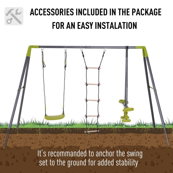 - Includes 1 glider, 1 swing, and 1 climbing rope ladder, can entertain up to 3 children at once.