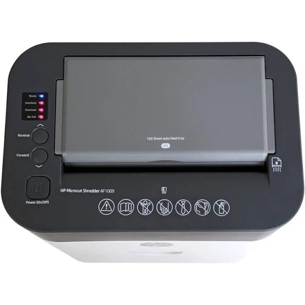 - Simply place up to 100 letter size papers and the HP 1009 will destroy them automatically.