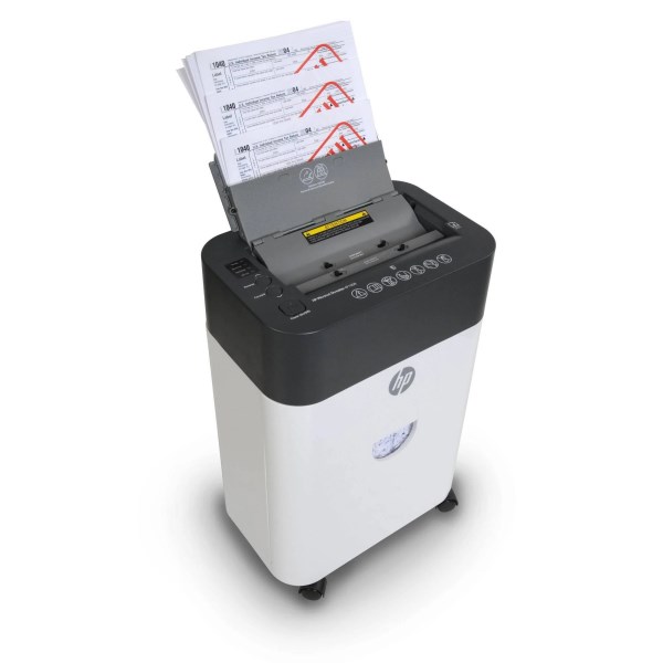 Place 100 sheets of paper into the auto-feeder and walk away! The HP HP-AF1009 Automatic Sheet Feeding Shredder does the work for you by shredding each page until the auto-feeder is empty. The manual slot accepts up to 9 sheets of bond paper at a pass and expired credit cards as well with an LED message center display that reads ready, bin-full, overheat, and overload indicators. The large 4.5 gallon pullout waste bin holds hundreds of shredded pages and casters for easy mobility. This AF1009 shredder features microcut technology reducing paper to tiny chips ensuring destruction of the most sensitive of documents