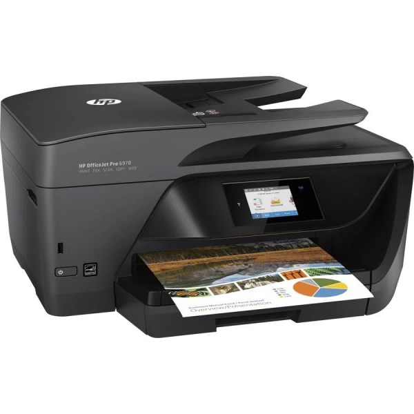 Supercharge the office with affordable color and fast two-sided performance. Save paper with automatic two-sided printing, and handle more tasks without slowing down. Get a variety of mobile printing options and seamless mobile setup. Dynamic security: Cartridges with non-HP chips might not work today or in the future. Features Affordable, quality color that never runs out Manage your budget with professional-quality color at up to 50% less cost per page than lasers. Print color or black-and-white for the same low price. Print up to 5x as many black text pages with optional Original HP high-yield ink cartridges. Produce professional-quality color and black text that’s perfect for printing reports, charts, and more. Easy mobile printing, seamless mobile setup Easily print from a variety of smartphones and tablets. Connect a smartphone or tablet directly to the printer and easily print without a network. Print wirelessly, and share this all-in-one with other wireless-enabled devices. Easily manage printing tasks and scan on the go, with the HP All-in-One Printer Remote mobile app. Handle more tasks and effortlessly scan Set the pace for success with rapid print, scan, and copy speeds. Save paper and conserve resources-consume up to 50% less paper with automatic two-sided printing. Make scanning effortless and accurate. Never turn a page again when you need to scan two-sided documents. Quickly copy, scan, and fax multipage documents with the 35-page two-sided automatic document feeder.