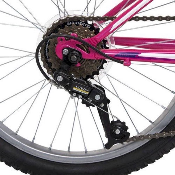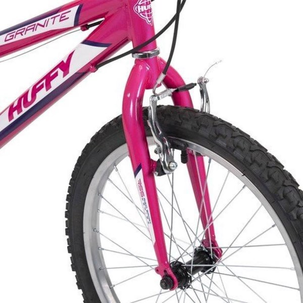 The Huffy 20 Highland Girls’ Mountain Bike is ready to hit bike paths – gravel, dirt, pavement – for an exhilarating ride. With the Shimano rear indexed derailleur, smooth twist shifting delivers 7 speeds to climb, to glide down hills, or to accelerate on level ground. Color: Aqua/White. Gender: Female.