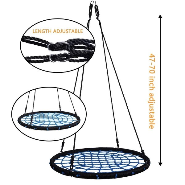Hyclat Saucer Tree Swing – 40”Spider Web Tree Swing Net Swing Platform Rope Round Swing 70″ Detachable Nylon Rope Swivel, Max 60