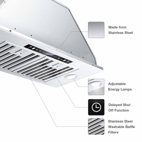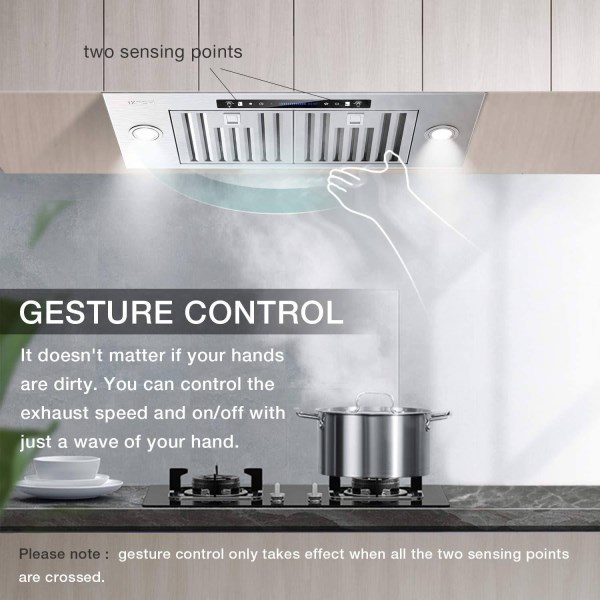 Modern Design: IKTCH Insert Range Hood is made from stainless steel, which has an elegant appearance and comes with remote control. The novel gesture sensing function gives you a whole new experience. Powerful Airflow: Maximum 900 CFM large airflow with good balance fans efficiently removes large amounts of smoke and cooking odors with ease from the air in your kitchen. Ultra-Quiet Operation: Customize your kitchen stove vent with the 4-speed setting to play with the suction and noise level. The noise level is at 40 decibels on the lowest setting and only 65dB max noise level. Bright Energy Saving Lamps: 2pcs 3W LED lights, adjustable brightness to meet your cooking need, can also save energy in your kitchen while emitting enough lights. Superior Filtration: Includes 3 matching dishwasher safe and easy removable stainless steel permanent filters to trap cooking grease and oil. Age Group: adult.