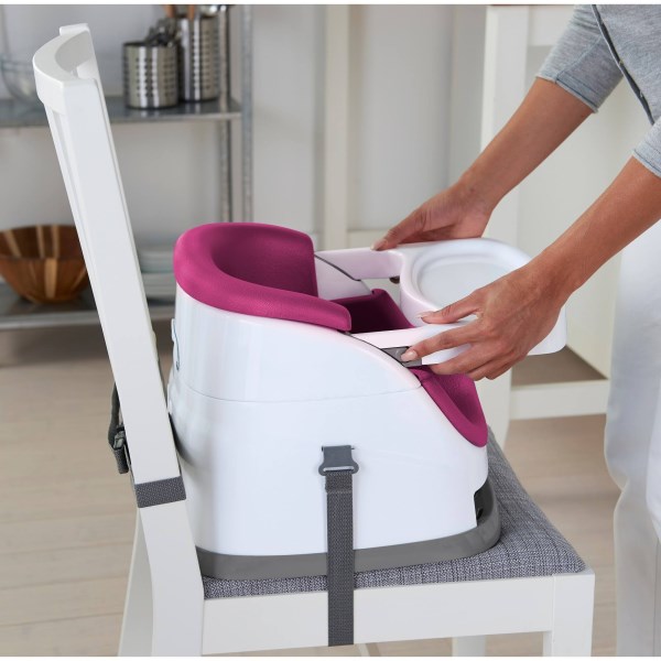 Meals are an important part of family time. Enjoy more laughter and conversation – including baby talk – by giving your little one a seat at the table. The Ingenuity Baby Base 2-in-1 Booster Seat easily attaches to most dining chairs so your baby can sit up higher and see more during family dinners. This portable baby feeding seat works just as well sitting with you at the table or as a floor seat during playtime. The removable tray gives your baby her own perfectly sized table, so snacks or toys are easily within reach. When not in use, the tray conveniently tucks away right underneath the booster seat itself. As your baby grows, you can remove the foam seat insert and convert the baby booster into a toddler seat. For all those meals in between, you can count on the wipeable seat and dishwasher-safe tray to leave you more time for family catch-up and less for kitchen clean-up. Color: Pink Flambe. Pattern: Solid.