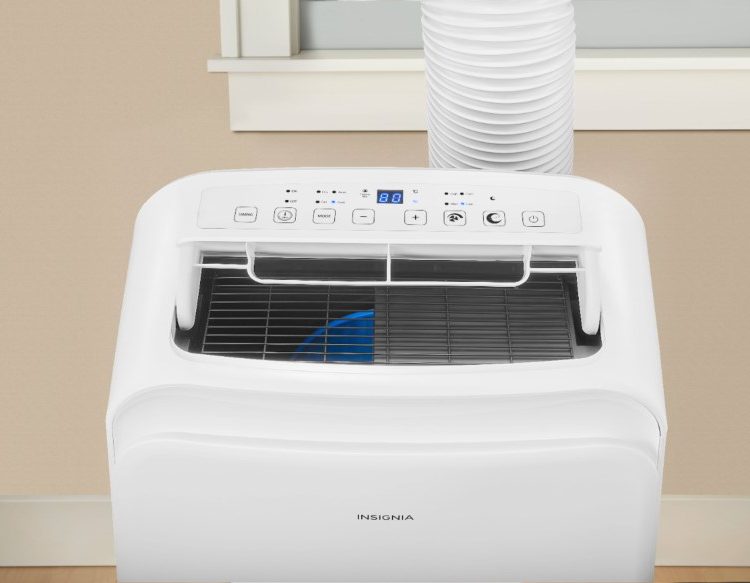 The included remote makes selecting the right temperature easy and lets you turn on the fan and dehumidifier from across the room. This Insignia three-in-one portable air conditioner produces up to 6,000 BTU of cooling power and quickly lowers the temperature in rooms up to 250 sq. ft. Up to 250 sq. ft. cooling capacity Allows you to keep a medium-sized room cool. 6,000 BTUs of cooling power Help keep your space at a comfortable temperature. Follow Me function Allows the remote control to serve as a remote thermostat sensor 3 fan-only speeds Help you ensure air circulation. Mobile design Smooth gliding caster wheels allows to easily move your unit from room to room. Programmable timer Schedule programs for preset operations and reduced energy consumption. Full function remote control Lets you control the unit from a distance LED control panel Illuminate the current settings for added visibility.