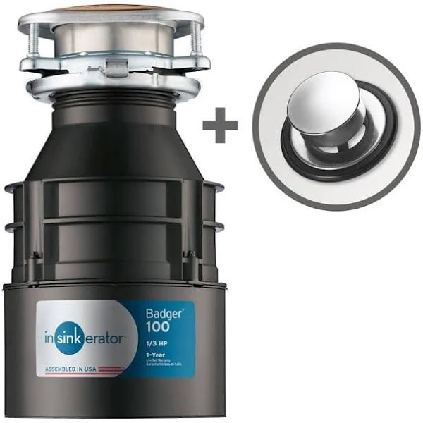 Badger Food garbage disposals are a reliable and functional choice when affordability is the prime concern. Badger 100 features a 1/3-horsepower heavy-duty quiet Dura-Drive induction motor, rugged galvanized steel construction for disposer durability. This disposer also features a space-saving compact design to save space under the sink.