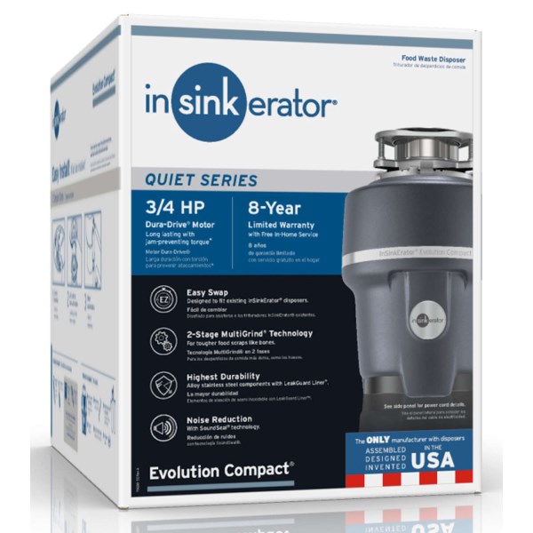- Clean your sink, and keep your drains free of build-up with InSinkErator’s Evolution Compact 3/4HP Household Garbage Disposal.