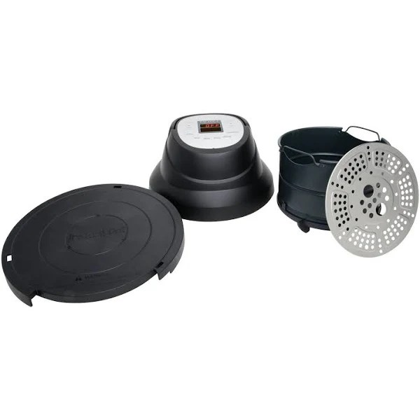 The Instant Pot Air Fryer Lid instantly transforms everyone’s favorite pressure cooker into a 6-in-1 air fryer with the simple switch of the lid. Swap out the regular pressure cooker lid for the innovative air fryer lid, and you’ve got a whole new set of cooking techniques available — all fast, easy and at the touch of a button. One appliance, two lids, infinite possibilities Now you can have every cooking method available in one appliance. With the Air Fryer Lid, you can expand your Instant Pot with 6 crisp cooking functions: air fry, roast, bake, broil, reheat and dehydrate. Accessories included The Instant Pot Air Fryer Lid comes with a multi-level air fryer basket and a dehydrating and broiling tray designed to ensure optimal results time after time. It also includes a protective pad to set it on when it’s hot, then flip it over after it’s cool to use as a storage cover. Bottom line If you want it all —the speed and versatility of the Instant Pot plus the crisping heat of an air fryer — in one space-saving device, then the new Instant Pot Air Fryer Lid is for you. Use only with the following Instant Pot branded 6 QT Electric Multi-Use Pressure Cookers. Model: Duo 60 (IP-DUO60, IP-DUO60 V2, IP-DUO60 V2.1, IP-DUO60-ENW, IP-DUO60 V3, Duo 60 V3, Duo Frontier Rose 60, Duo Dazzling Dahlia 60, Duo White 60, Duo Teal 60, Duo Red 60, Duo Black SS 60, Duo Red SS 60, Duo Nova Black SS 60). Lux. Duo Plus 60 (Duo Plus 60, Duo Plus Cinnamon SS 60, Duo Plus Blue SS 60, Duo Plus Copper SS 60, Duo Plus Black SS 60). Ultra 60 (Ultra 60). Viva 60 (Viva, Viva 60, Viva Cinnamon 60, Viva Cobalt 60, Viva Eggplant 60, Viva Red SS 60, Viva Black SS 60). Nova Plus 60 (Nova Plus 60). Duo Nova 60 (Duo Nova 60). Air Fryer Lid is NOT compatible with (model) Smart WiFi 60, Duo Evo Plus 6, Duo Evo Plus 60, Duo SV 60 or Max 60.