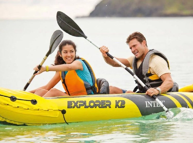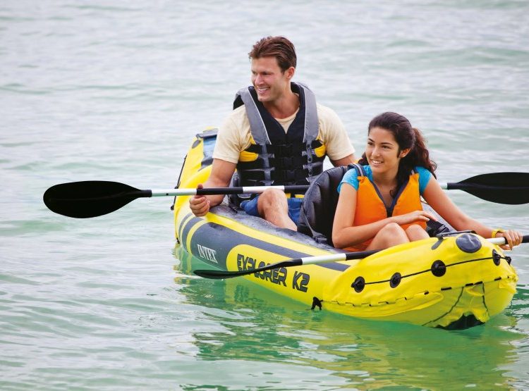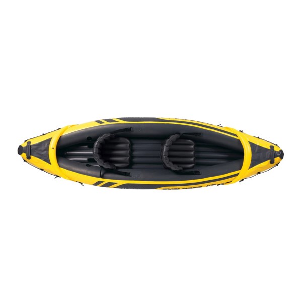 Grab a friend and spend a summer day out on the water. Its deluxe, streamline design makes for easy paddling on both lakes and mild rivers, all while remaining lightweight and compact. Its cockpit features two adjustable seats with backrests, handles on front and back, grab line on both ends and a directional skeg (fin) for enhanced control. Make the most out of this summer with the Intex K2 kayak. Includes high-output air pump and two 84″ aluminum oars, everything you need to hit the water. Dimensions: 20″ x 36″ x 123″.