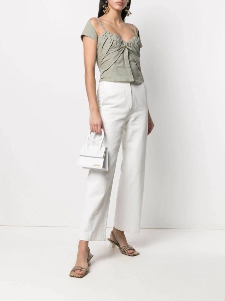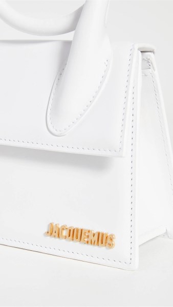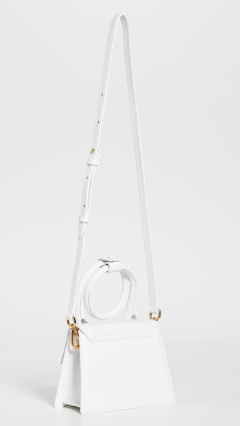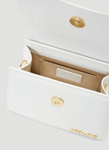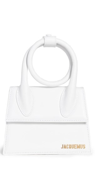 Women’s Jacquemus Le Chiquito Noeud Bag – White – Totes Smooth leather with twill lining and brushed gold-tone hardware. Made in Spain. Measures approx 7W x 5.25H x 3D. Spiral top handle measures approx 11 in length with a 3.5 in drop. Adjustable and detachable shoulder strap measures approx 42 in length. Fold-over flap top closure with magnetic fastening. Logo metal hardware on front. Interior card slot.