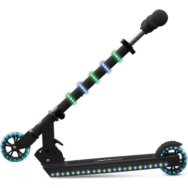 Its time to boost your fun with the Jetson Orbit a new light-up folding scooter that’s ready for take off! It features bright LED lights in the stem and deck, along with LED light-up wheels, making it awesome to zoom around day or night. No rocket fuel necessary! With an easy fold mechanism you can carry it when they’re done riding and store it in the closet or the car. The Orbit requires 3 AA batteries – not included – to power the stem and deck lights.