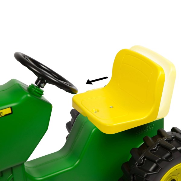 Take your kid’s playtime to the next level with this John Deere Plastic Pedal Tractor ride-on featuring authentic John Deere colors and details. This rugged ride-on toy gives little farmers what they need to inspire imaginative play. They’ll love that the steering wheel is fully functional, making it easy to get from one adventure to the next. You’ll love that the adjustable seat grows with your toddler, so that they can keep the pedals at the right distance and won’t outgrow it quickly. Kids appreciate a hard-working machine that can perform a multitude of tasks, and that’s just what they get with this John Deere Plastic Pedal Tractor. This rugged ride-on gets the job done with must-have features. The seat is adjustable so that it can grow with your child, up to the maximum weight limit of 80 lbs. The easy-to-reach pedals make riding frustratoin free, and the steering wheel is fully functional, making it easy to get around from one outdoor adventure to the next!