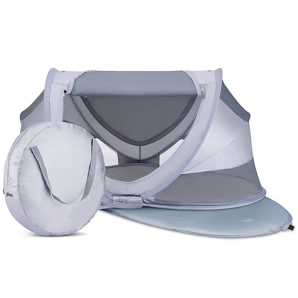 Explorers Stick Together No matter where you adventure, when you take your wild things out, you need a place for them to crash. Give your children a comfy space on the beach or at the soccer game with a self-inflating portable baby bed that can fit in a large diaper bag. For children 6 months to 5 years Dew resistant, bugproof, and UPF 50 sun protection Easy pop up setup Super comfy self-inflating sleeping pad Washable cotton cover Small enough to take anywhere Available in six colors Available in two sizes Regular (6 months-3 years) Large (6 months -5 years) The Gloo is perfect for giving babies and big kids a comfy place to snuggle up when you’re off on your next great adventure. Unzip it and pop it up when it’s time to nap in the shade. The Gloo’s mattress is self-inflating, so just sit back and wait for bed to come to you. When it’s time to head back home, just press the air out of the mattress, fold up the Gloo, and you’re ready to roll. Adventure won’t wait forever — get the Gloo, and don’t miss another moment. For Explorers Big and Small Available in two sizes, the Gloo is safe for babies as early as 6 months, all the way up to children five years old. Bring Everything Travel light with children for the first time ever — the Large Gloo only weighs 5.5 lbs. Less Worrying In the Wild The Gloo is breathable and safe for babies, so you can focus on making memories. Shady Naps Even the coastal sun is no match for this baby beach tent. The Gloo’s UPF 50 canopy keeps children safe in the shade. The Regular Gloo comes with a zippered mesh opening, and the Large Gloo comes with a two layer mesh and roll-down fabric shade opening. Mosquitos Have Met Their Match The Gloo’s ultra-fine mesh keeps bugs out and children safe from bites and stings. Super Easy Setup No poles, no assembly — just unzip, pop up, and settle in. How to fold and unfold No-Pump Air Mattress The Gloo’s sleeping pad is self-inflating — just open it up and get ready for bed. How to set up the mattress Easy In and Out Never wake a sleeping baby again, thanks to the Gloo’s giant easy-access zipper panel. Muddy Puddles Welcome The Gloo’s soft, cotton polyester cover is removable and 100% machine washable. Crazy Portable The Regular Gloo is small enough to fit in bigger diaper bags, and the Large Gloo isn’t far behind it. Use the storage bag to grab it and go when adventure calls. Zero Flame Retardant Chemicals Safety tested by our team to be 100% flame retardant chemical free — because what your children sleep on matters. Specifications Technical Specs Size: Regular Materials: Polyester, plastic, foam, fiber, cotton, mesh Open dimensions: 44” L x 25” W x 18” H Folded dimensions: 14” L x 5” W x 14” H Item weight: 3.9 lbs Min. child age: 6 months+ Max. child age: 3 years Size: Large Materials: Polyester, plastic, foam, fiber, cotton, mesh Open dimensions: 51.5” L x 28” W x 24.5” H Folded dimensions: 18” L x 4.5” W x 17” H Item weight: 5.5 lbs Min. child age: 6 months+ Max. child age: 5 years Helpful Resources Instruction Manual Warranties and Accolades