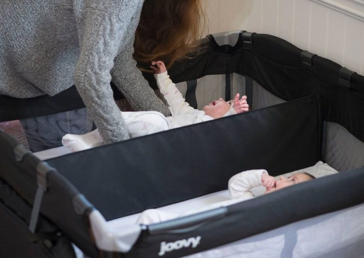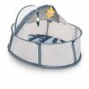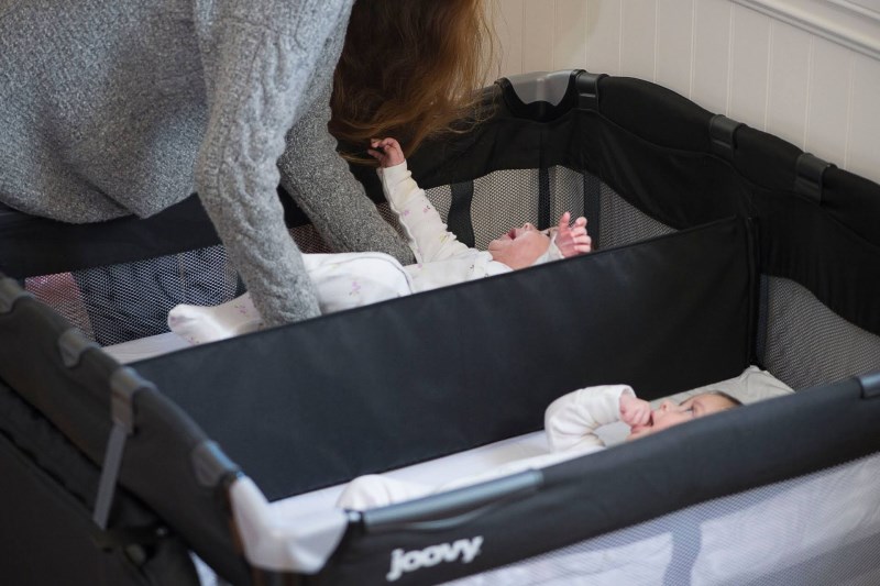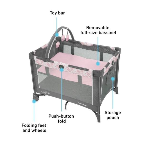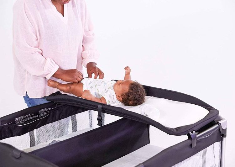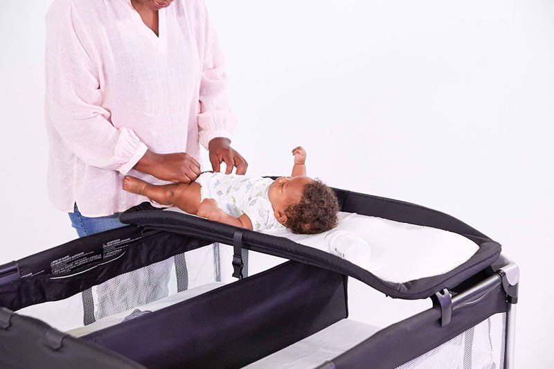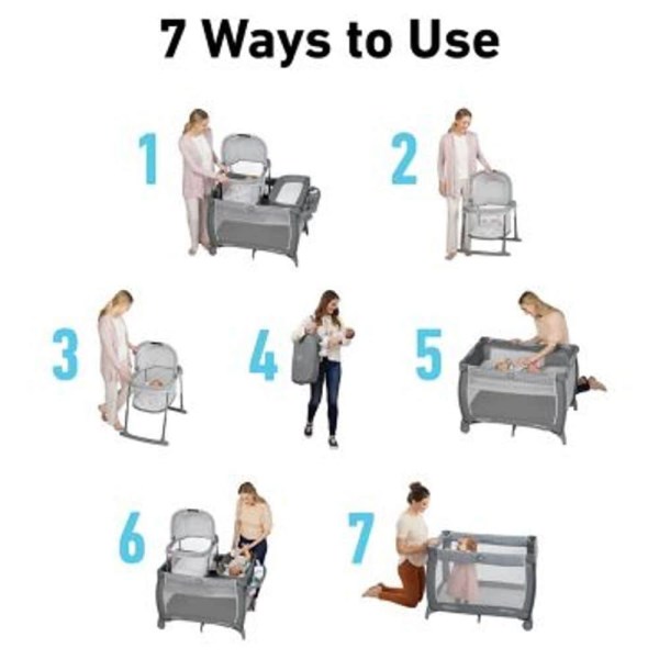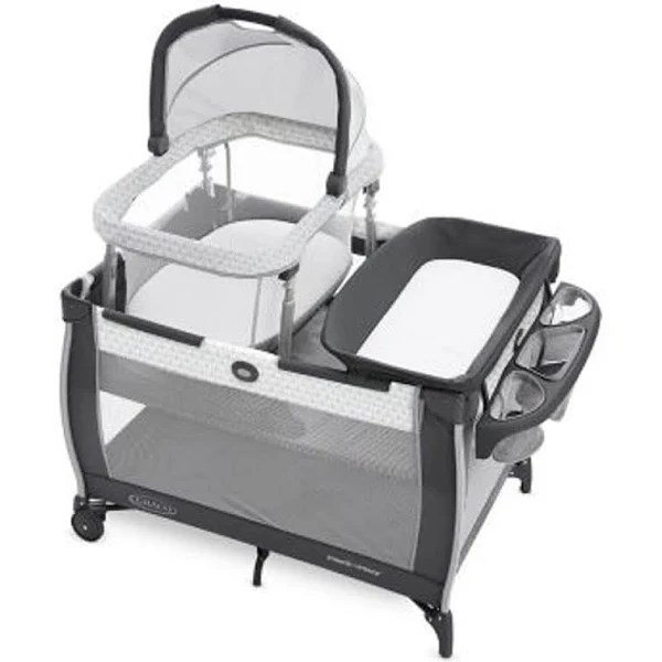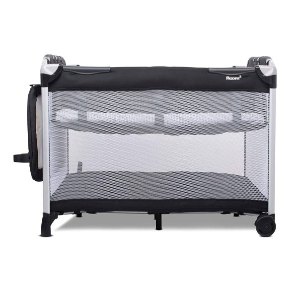 Description The Room? Twin Nursery Center is the perfect accessory for the Room? playard. This add-on product extends the life of the Room? with bassinet and changing table functionality. Suitable for one baby as well as twins and multiples, the Room? and Twin Nursery Center create a dynamic combination that will grow with the family from birth through toddler years. The Twin Nursery Center is easy to install and features a large bassinet that is ready to hold twins or two babies up to 15 lbs each (30 lbs total.) A removable center divider zips into place to give each baby a separate napping area. Please discontinue use when babies start to lift themselves up. The nursery center includes a changing table that supports a baby up to 25 lbs. The surface is removable and machine washable. When not in use, the changing table flips over the side of the playard. The Room? is sold separately.