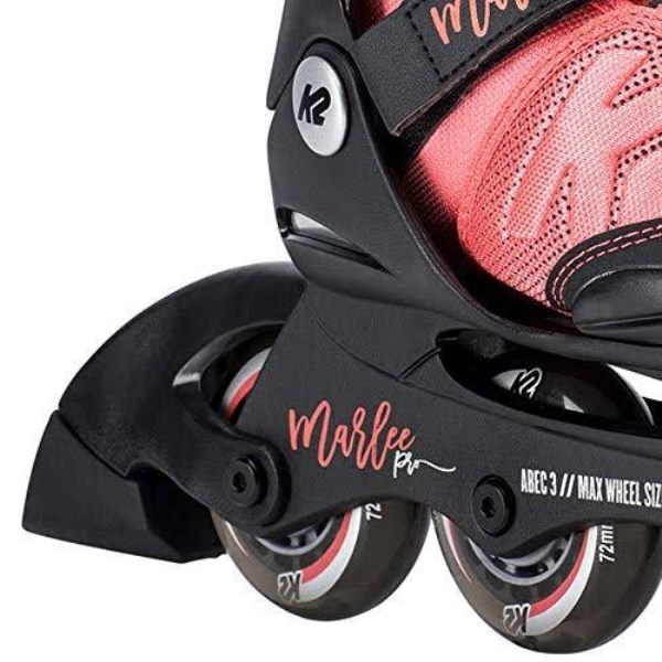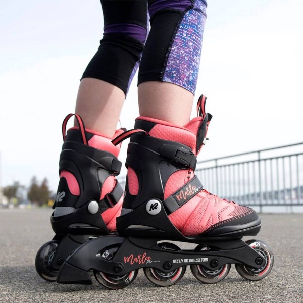 This new cute coral pink Marlee Pro Junior girls skate from K2 has their signature quick lace system to make it quick for parents and kids to do up laces with ease. To suit toddlers to teens. Size adjustable over 4 sizes for growing feet. Features include; 72mm wheels suitable for indoor and outdoor use Boot grows in size Quick lace system Soft comfortable boot Rear brake fitted Carry straps at back K2 quality with full adjustability to make sure they last for years.