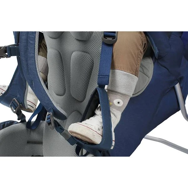 The Kelty Journey PerfectFIT child carrier allows you to safely include your child in all of your adventures. It has on-the-go fit adjustability and streamlined storage. The carrier’s PerfectFIT suspension system provides accurate on-body size adjustment so you can easily customize the fit even after you’ve put it on. Its broad torso adjustability range of 15.5′-21′ allows the carrier to comfortably fit parents of varying heights and sizes. A lightweight aluminum frame provides stability and load-bearing strength. Hex mesh on the padded backpanel and waistbelt provides excellent cushioning and ventilation. Load lifter straps relieve stress on your shoulders and an adjustable sternum strap positions the shoulder straps across the chest to prevent chafing under the arms and on the shoulders. The carrier has a total carrying capacity of up to 50 pounds (including child, carrier, and any contents). The frame has a folding design that lets the carrier stand rigidly. Dual handles make it easy to grab and maneuver the carrier. Your child rides safely inside the carrier’s padded aluminum roll cage. The padded cockpit seat has height adjustability to ‘grow’ with your child. The Journey PerfectFIT Sunshade (sold separately) can be used to add protection from glare, UV, and light precipitation. The carrier has a large zippered main storage compartment and a stretch mesh hipbelt pocket to keep small valuables close at hand. The Kelty Journey PerfectFIT child carrier is available in your choice of color options.
