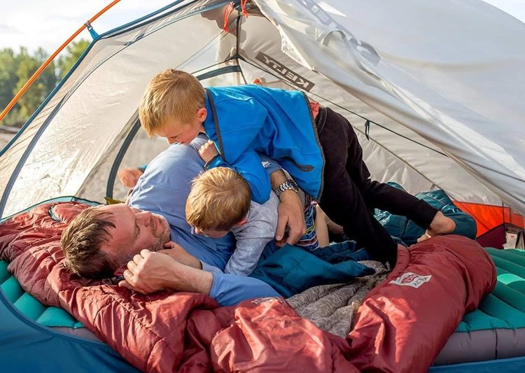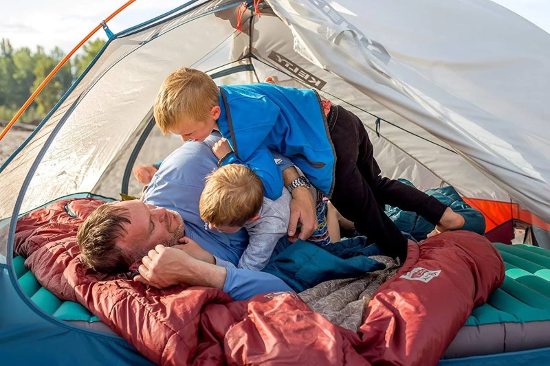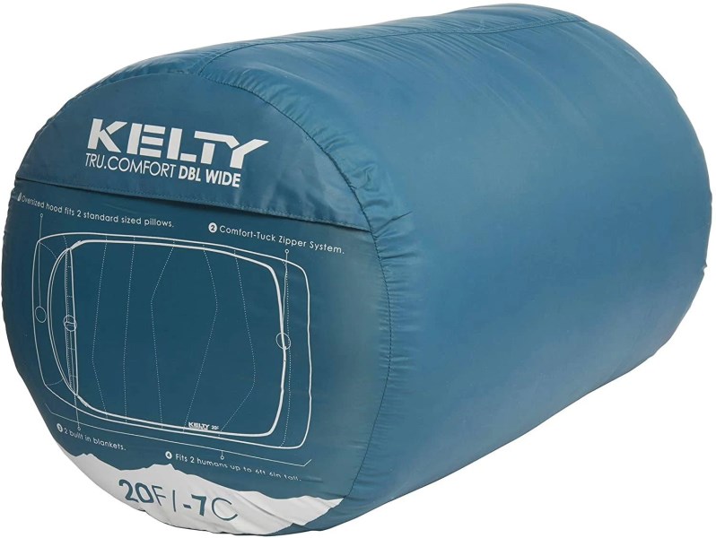 Taffeta Loaded with FEATURES for two: independent ventilation, fully removable zip off top layer, two built in blankets, two way zip foot vents, oversized Hood large enough to fit 2 standard pillows from home. Cloud loft insulation: compressible, quick drying, and ultra-soft. Lightweight cloud loft fill provides warmth in three seasons under the stars with a comfortable price tag. The bag liner and shell are made from silky smooth 75D poly Taffeta. Wider than a queen side bed: room to snooze, or snuggle, 64 inches of shared shoulder space, 84 inches of total length. Go ahead, roll around in your sleep. Perfect for couples: no need for separate bags or blankets for Bae. Stay warm, get hot, and cool off in comfort and style. Family camping favorite: large enough to comfortably snuggle up with first time campers in the great outdoors without overheating mom or dad. Customized temperature options keep everyone cozy until your little one wakes up at the crack of dawn. Stuff sack included Not too warm, not too cold; not too small, not too bulky; the Kelby Tru Comfort Doublewide sleeping bag is the goldilocks of couple’s camping comfort (try saying that 3 times fast). Fully equipped for two independent sleepers with a fully removable zip off top layer for those humid summer nights, and two built in blankets to customize comfort. Two way zip vents so you can have your feet outside the covers without freezing your companion, and the large hood on the bag fits two standard size pillows for at-home level comfort in the great outdoors. Plenty of room to frolic, with a wider profile than a queen sized bed, and length to fit up to 6ft. 6in. The Tru Comfort Double Sleeping bag also makes a great choice for the family camping scene, allowing kiddos to crash with mom and dad at night. No need for separate bags and blankets for the little ones. Cloud loft insulation keeps you warm without overheating and provides an unmatched, plush sleeping surface that will rival your bed at home. Two way oversized zippers don’t get stuck, and all components of the bag are built to last year after year. To top it all off, you can rest easy knowing your sleeping bag is backed by the proud folks over at Kelby, with a that will cover your buns (well, the sleeping bag) for the life of the product. Fully equipped for two independent sleepers with a fully removable zip off top layer for those humid summer nights, and two built in blankets to customize comfort. Two way zip vents so you can have your feet outside the covers without freezing your companion, and the large hood on the bag fits two standard size pillows for at-home level comfort in the great outdoors. Plenty of room to frolic, with a wider profile than a queen sized bed, and length to fit up to 6ft. 6in. The Tru Comfort Double Sleeping bag also makes a great choice for the family camping scene, allowing kiddos to crash with mom and dad at night. No need for separate bags and blankets for the little ones. Cloud loft insulation keeps you warm without overheating and provides an unmatched, plush sleeping surface that will rival your bed at home. Two way oversized zippers don’t get stuck, and all components of the bag are built to last year after year. To top it all off, you can rest easy knowing your sleeping bag is backed by the proud folks over at Kelby, with a that will cover your buns (well, the sleeping bag) for the life of the product.