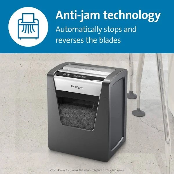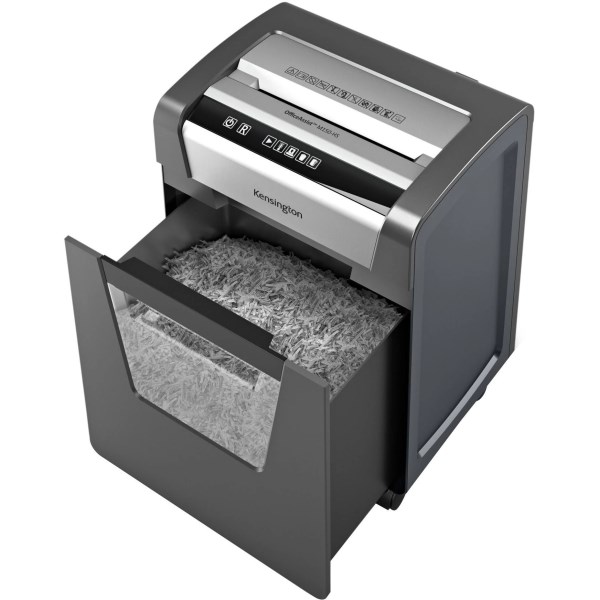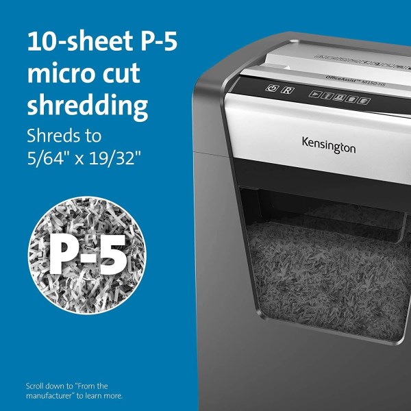 Micro cut shredder shreds up to 10 sheets at a time, including staples and paper clips; P-5 micro-cut shredding provides a higher level of security. Ideal for shredding sensitive and confidential documents. Quiet motor with anti-jam technology benefits the office with less noise and disruption. Motor automatically stops and reverses when too much paper is inserted, avoiding time-consuming and paper jams. A 120-minute continuous run time means this shredder can run long without overheating, For extended shredding. A six-gallon/250-sheet bin helps you shred more and empty less. A bin full indicator makes it easy to know when it’s time to empty. Touch panel buttons deliver simple, intuitive operation.