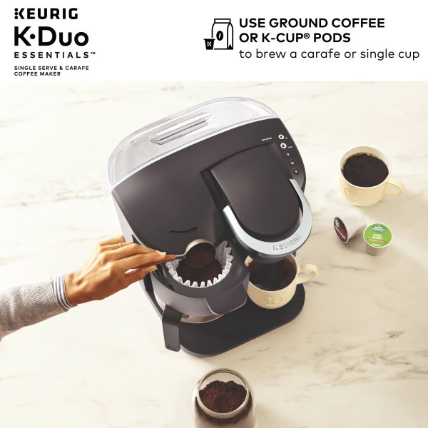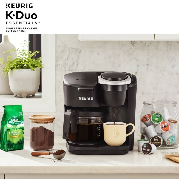 • Keurig K-Duo Essentials Coffee Maker, with Single Serve K-Cup Pod and 12 Cup Carafe Brewer, Black