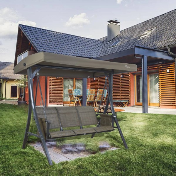 The Brenda Patio Swing Glider is your best bet for light and durable comfort throughout long summer days and warm winter evenings. This hammock glider compliments the look of any patio or porch with its crisp, understated color and contemporary design, perfect for encouraging languid conversations with cool drinks in hand. With room for 3 to share, it also maximizes your outdoor space and is certain to be a favorite with your family. Both weather resistant and adjustable, the canopy is designed for protection against rain, wind and dust, creating an island of shade on even the sunniest days.
