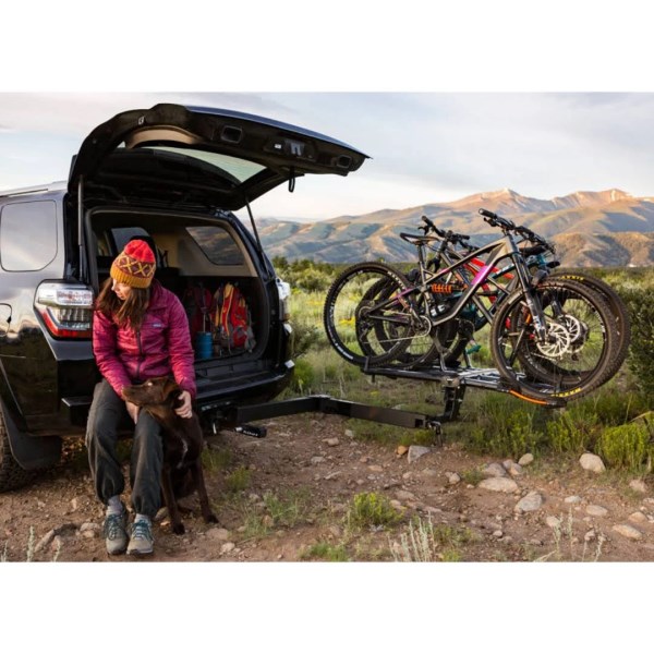 Kuat Pivot 2 Swing Away ExtensionConvenient access to the trunk without removing the bikes. The hitch-mounted bike rack is an extremely useful tool for transporting bikes, however, when you reach your destination, having a bike rack mounted directly behind your trunk makes unpacking any supplies out of the trunk difficult. The answer to this problem is the Kuat Pivot 2 Swing Away Extension. Featuring a swing away extension arm, the Pivot 2 swings the entire bike rack 90 or 120 degrees away from the car, making loading and unloading much more convenient. The Pivot 2 can support up to 250 pounds and has a stainless steel and aluminum thru-axle. When on the road, use the Flatlock cam system to lock the swing arm in place. The Pivot 2 is available in a driver or passenger-side swing arm. FeaturesSwing arm Quick release 90 and 120 degree swing away. Convenient Moves your bikes out of the way of the trunk or rear doors without taking them off the rack. Sturdy Stainless steel and aluminum thru-axle, locking hitch pin and holds up to 250 lbs.