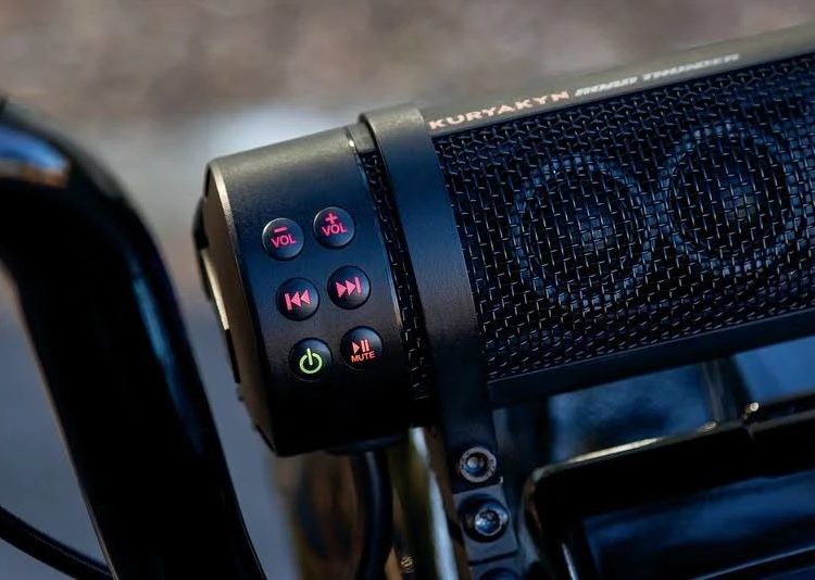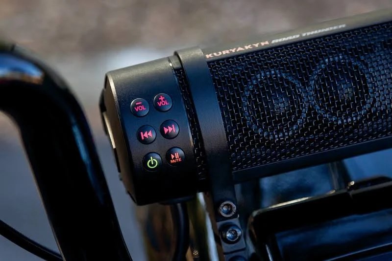 With 300 watts of peak power and increased versatility thanks to an integrated USB charging port the Kuryakyn 2720 Road Thunder Sound Bar Plus takes handlebar-mounted audio to a new level. An internal 4-channel amp powers two 2″ x 3″ full-range speakers with dual voice coils and four high-frequency 1″ silk dome tweeters with N42 grade magnets for powerful distortion-free sound at any volume level. Amplifier 4 x 19WRMS max 4 x 23W. Durable IP66-rated housing is weather-resistant. Built-in heat sink and self-protection circuit combat excessive heat and over/under voltage regulation. An internal 3.0 Bluetooth receiver allows wireless connectivity to any Bluetooth-enabled smartphone or music device. Auxiliary input and output ports connect standard devices via 3.5 mm cable. Integrated water-resistant 1.0 Amp USB charging port in end cap. Includes power ground and ignition wire for easy disconnect. Speaker measures 10.6″ L x 2.9″ diameter and bracket measures 6″ L x 3″ in diameter. Universal articulating mounting clamps fit virtually any bars between 7/8″ and 1-1/4″.