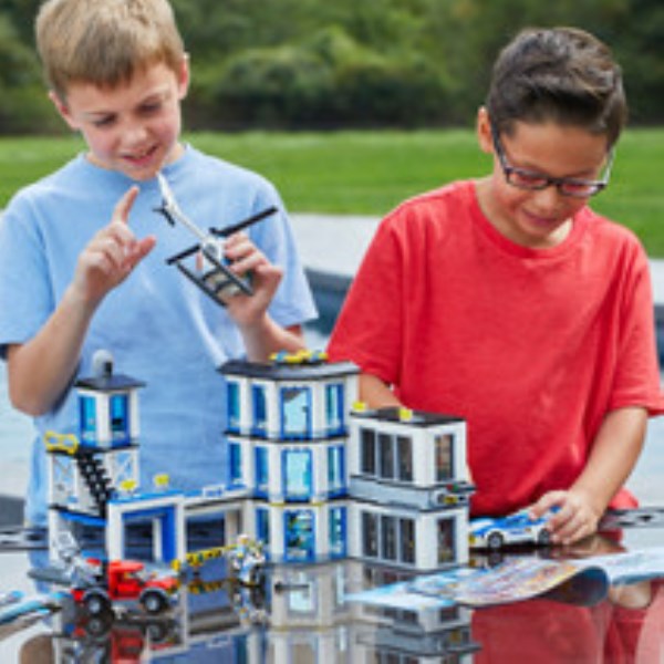Be part of the action with the LEGO? City police as they try to keep the crooks in jail . featuring a 3-level Police Station loaded with accessory elements . a jail cell with exploding wall function . watchtower . garage and offices . helicopter . police pursuit car and police motorbike . plus the crooks? truck with rotating . extendable cherry picker. Includes 7 minifigures plus a police dog figure.