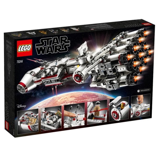 Build . play and display a legendary Star Wars starship! This LEGO Star Wars 75244 interpretation of Tantive IV . seen fleeing from an Imperial Star Destroyer in the opening moments of Star Wars: A New Hope . faithfully recreates all of the Rebel cruiser’s signature details including an elongated hull . detachable escape pods . elevating gun turrets . cargo hold and 11 massive engines at the back. Remove the hull plating of this fantastic LEGO Star Wars collectible construction toy to reveal a detailed 2-minifigure cockpit . conference area with table . weapon rack and a control console with 2 seats. The radar dish also doubles as a convenient carry handle . which makes it perfect for flying around the room. When the mission is over . this amazing kid’s buildable toy also makes a great centerpiece for any LEGO Star Wars construction toy collection. The set also includes 5 minifigures and an R2-D2 droid LEGO figure.