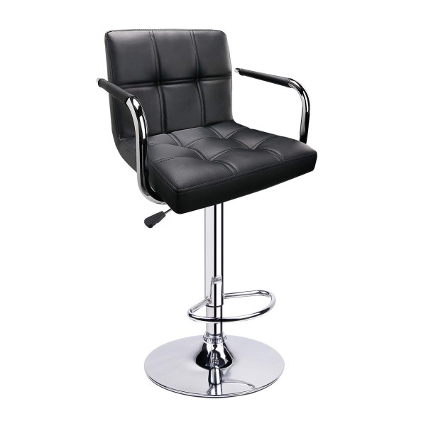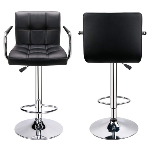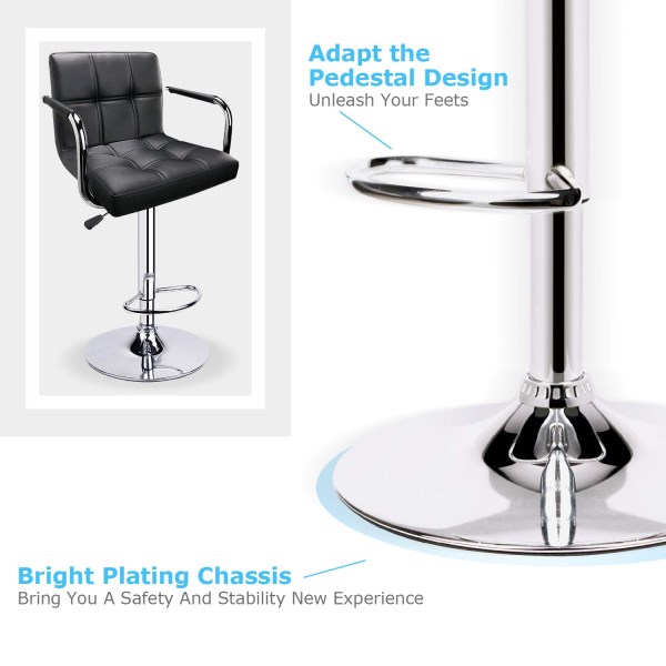 Leopard Adjustable Bar Stools with Armrest, Square Back Swivel Double Black