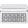 The LG 8000 BTU 115V windowmounted air conditioner is perfect for cooling a room up to 340 square feet. You will cool a lot and save even more with this units energy saver function 24hour onoff timer and a 12.1 Energy Efficiency Ratio. With its stylish fullfunction remote you can even get your cool on from across the room. LGs patented Gold Fin anticorrosion coating provides a protective shield so the unit lasts longer. Plus set up is a cinch with the included installation kit.