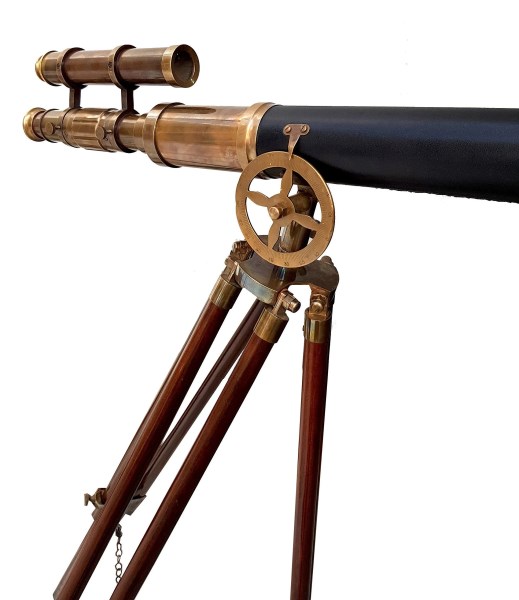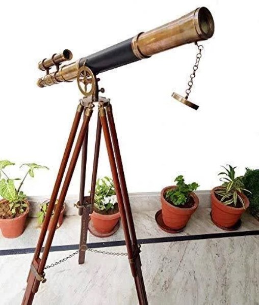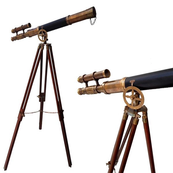 Maritime Brass Antique Double Barrel Designer Telescope with Wooden Tripod Floor Standing Telescopic Tripods – collectiblesBuy