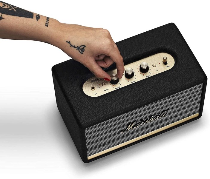 Experience high-quality audio and precise control with this Marshall Acton speaker. Its dual tweeters and subwoofer provide exceptional sound quality despite its small size, and Bluetooth 5.0 connectivity keeps you in control with no wires required. This Marshall Acton speaker is compatible with the Marshall Bluetooth App, so you can customize your listening experience from a distance up to 30 feet. 60W nominal power handling Helps ensure rich, dynamic sound. 2-way speaker system Sounds like 1 source rather than several separate sources. Built-in Bluetooth Offers easy connectivity to your compatible device. 3.5mm jack Enables easy connection of a microphone. Bass reflex enclosure With a rear-firing port promotes optimal performance. 50Hz – 20kHz frequency response Ensures a wide range of accurately reproduced sound. Volume control Lets you easily adjust the listening level to suit your preferences.