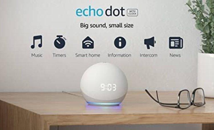 White Alexa Amazon Echo Dot (4th Gen) with Clock Smart Speaker