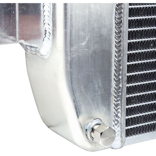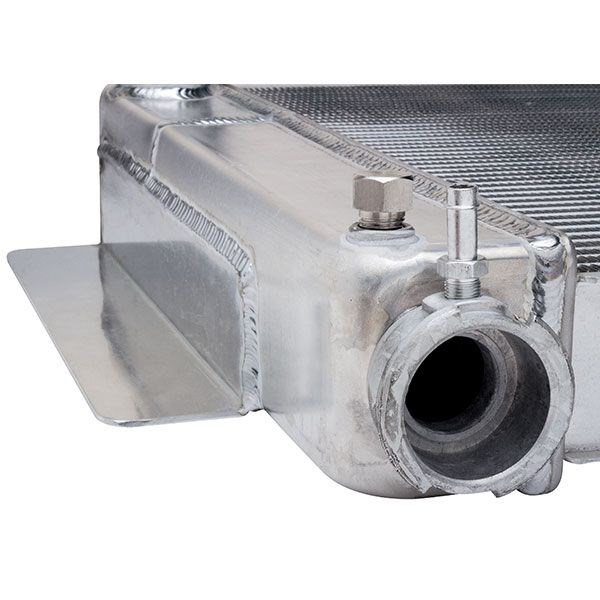 Maxx Power Tri Flow Radiators are designed to eliminate your overheating issues. Temperature reductions of up to 24 degrees F over your current temp are not uncommon. Independent lab tests with LS motors have shown 20 degrees F drop in temp over conventional aluminum radiators and even more over OE copper/brass. Designed to eliminate overheating issues Temperature reductions of up to 24 degrees F Fully TIG welded 6061 aluminum tanks and core Unique design passes coolant though core 2x more than other radiators It was developed with 2 rows and a 1 inch oval tube core and a unique coolant path that routes the coolant through the radiator core 3 times and increases turbulent flow while passing the coolant in front of the fan 3 times. Traditional radiators only pass the coolant 1 time in the front of the fan. This is what makes this Radiator the best on the market. The universal design with mount tabs welded to each tank and a traditional upper 1.5 inch inlet installed on the driver side and lower 1.75 inch outlet intake on the passenger side make this ideal for muscle cars, street rods, pro touring, etc. It also has 1/4 inch NPT welded bungs with SS plugs, one located in the bottom driver side tanks for a drain and the other under the radiator cap frame for a LS steam port or temp sensor for electric fan controller. Fully TIG welded 6061 aluminum tanks and core assure long life and leak free seams.