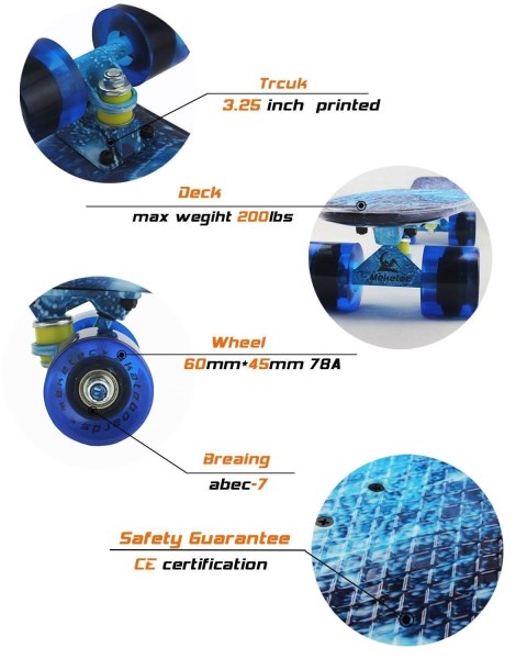 - High Value- Meketec Unusual skateboard appearance outperforms many of the leading brands and high cost performance price.