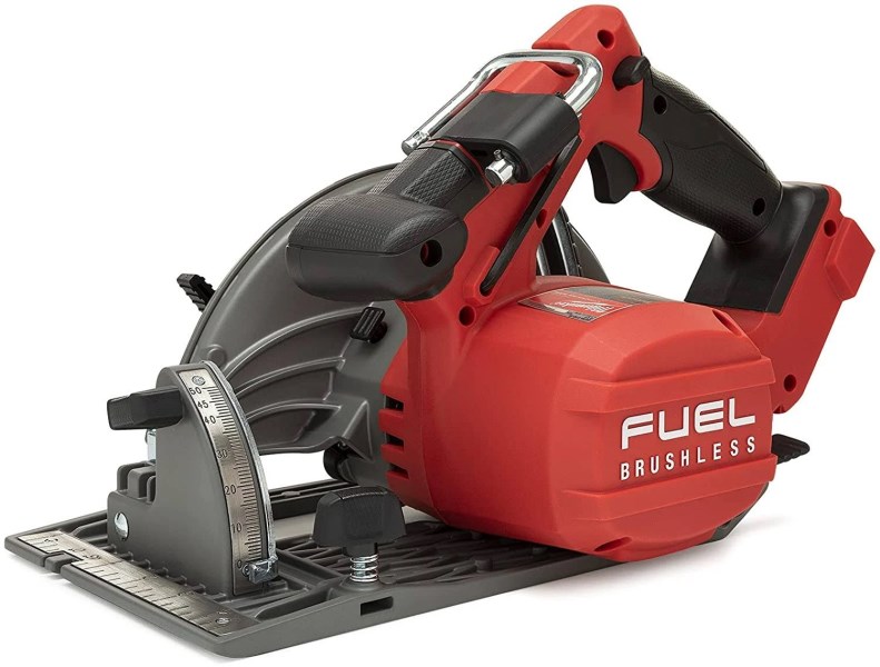 Designed for the carpenter, remodeler and general contractor the M18 FUEL 7-1/4 in. Circular Saw from Milwaukee generates the power of a 15A corded saw, cuts faster than a 15A corded saw and gives users up to 750 cuts per charge. The POWERSTATE Brushless Motor provides 5,800 RPM and higher speeds under load for corded cutting performance. REDLINK PLUS intelligence ensures maximum performance and protection from overload, overheating and over-discharge. The M18 REDLITHIUM High Output HD12.0 battery delivers unmatch run-time in all applications. All magnesium guards and shoe delivers extreme durability for job site conditions. A built-in rafter hook offers quick and easy storage and an electric brake stops the blade quickly after cuts are complete for maximum productivity.